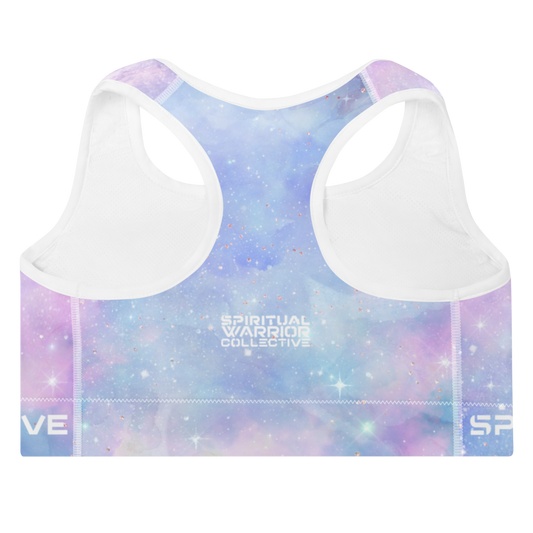 PINK COSMOS AND SRI YANTRA SACRED GEOMETRY PADDED SPORTS BRA